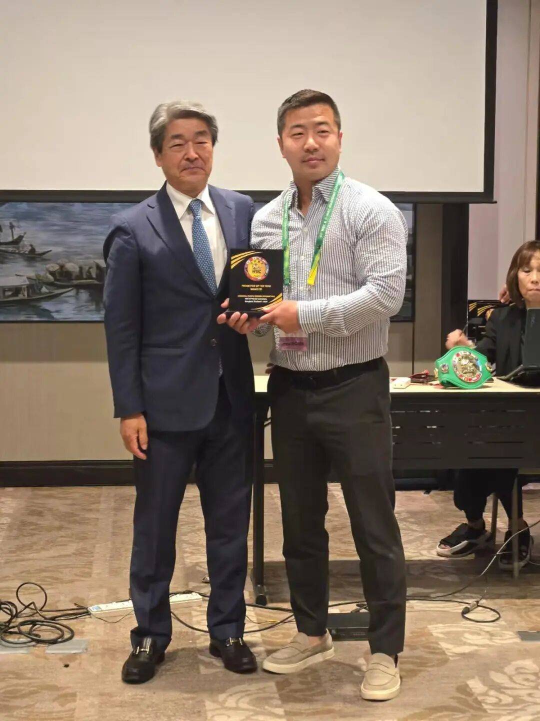 据统计,在行将往常的2025年里,王飞是中国劳动拳击现实东说念主中举办比赛及指示拳手设备频次最多的一位,莫得之一!以刚刚往常的11月为例,王飞连络为国内拳手安排了7台海外赛事,其中包括沙拉阿拉伯利雅得的RING天下顶级赛卡,与本纳维德斯、哈尼、罗德里格斯等拳坛巨星同台打擂。而刚刚于11月29日摈弃的“激战曼谷”015系列赛,出战的中国拳手更是达到10东说念主之多,并等分了3条金腰带!因而,王飞此番受邀出席WBC天下拳击年会,并连领受货两项现实东说念主海外大奖,亦然实至名归之荣誉!
